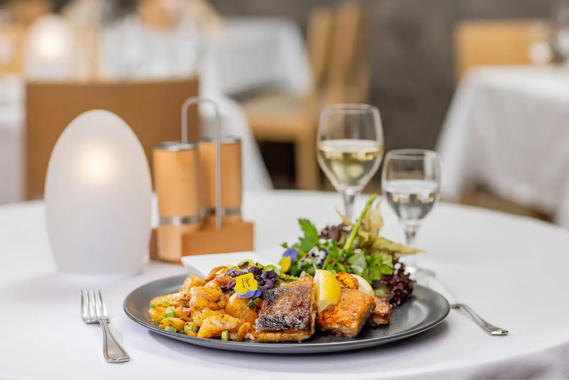Wir präsentieren Ihnen eine Küche, die alle Sinne anspricht. Erleben Sie die breite Palette unserer frisch zubereiteten Spezialitäten, die von traditionellen deutschen Gerichten bis zu Delikatessen aus dem hohen Norden reichen. Frisch gefangener Fisch aus der Ostsee oder schmackhafte, vegetarische Gerichte.