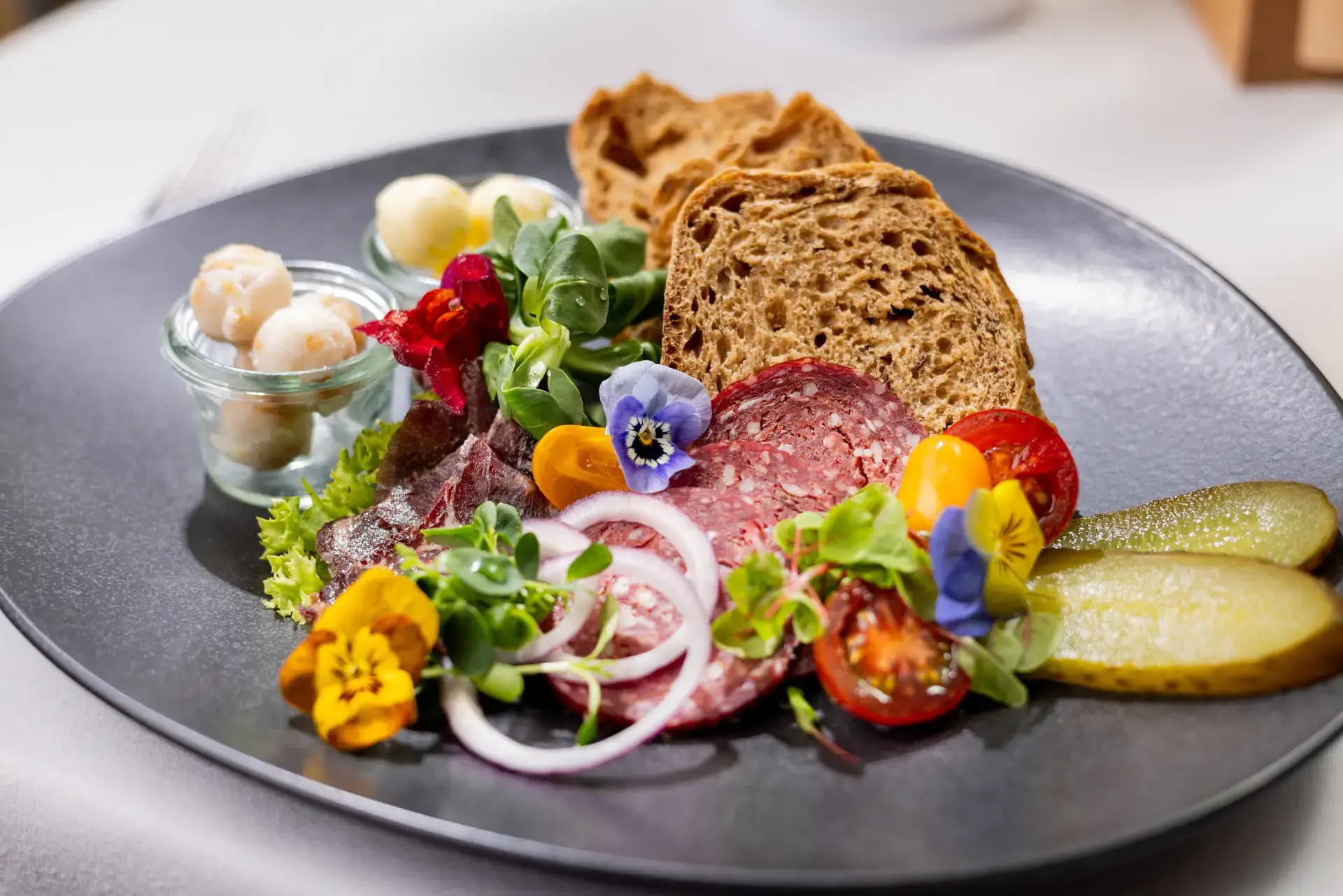 Rinderschinken & Rindersalami vom Zirkower Bio-Rind mit Graubrot, Apfel-Griebenschmalz, Butter und Saure Gurken